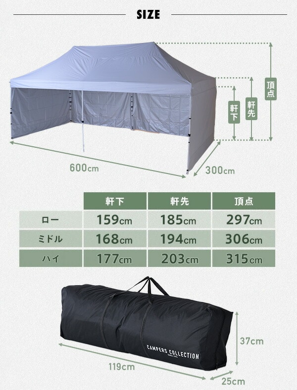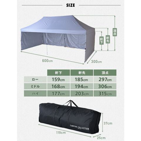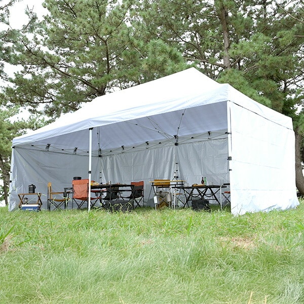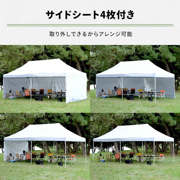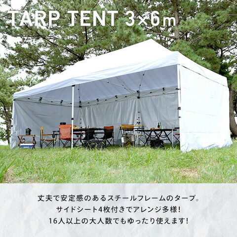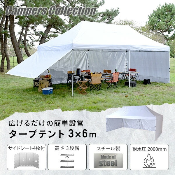 おもり6個付き サイドシート4枚付き ワンタッチタープテント 3m×6m スチール テント タープ FRT-600(WH)/TPW-9(2P) ワンタッチ ワンタッチテント 大型 UV加工 撥水 アウトドア キャンプ イベント 山善 キャンパーズコレクション 【送料無料】