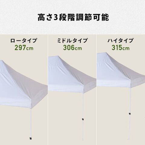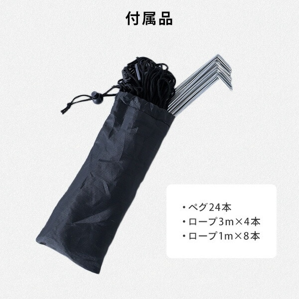 | 商品説明 | ●【テント】 ●折りたたみ時サイズ:幅119×奥行25×高さ37cm ●サイドシート4枚付き ●フレームは丈夫なスチール製 ●耐水圧2000mm ●高さ3段階調節可能(頂点部297cm/306cm/315cm) ●組み立ては広げるだけの簡単設置 ●コンパクトに収納可能 ●UV遮蔽率98.3%!シルバーコーティング生地採用 ●付属品:ペグ24本、ロープ3m×4本、ロープ1m×8本 【重り】 ●商品天面の上部キャップを外し、水を注入してお使いください ●注入後 1個約4.5kgとなります ●タープ脚部を本製品で挟むように設置し、固定ボルトを2か所しっかりと固定してタープ脚部が抜けないのを確認してご使用ください ※おもりは6個付属します |