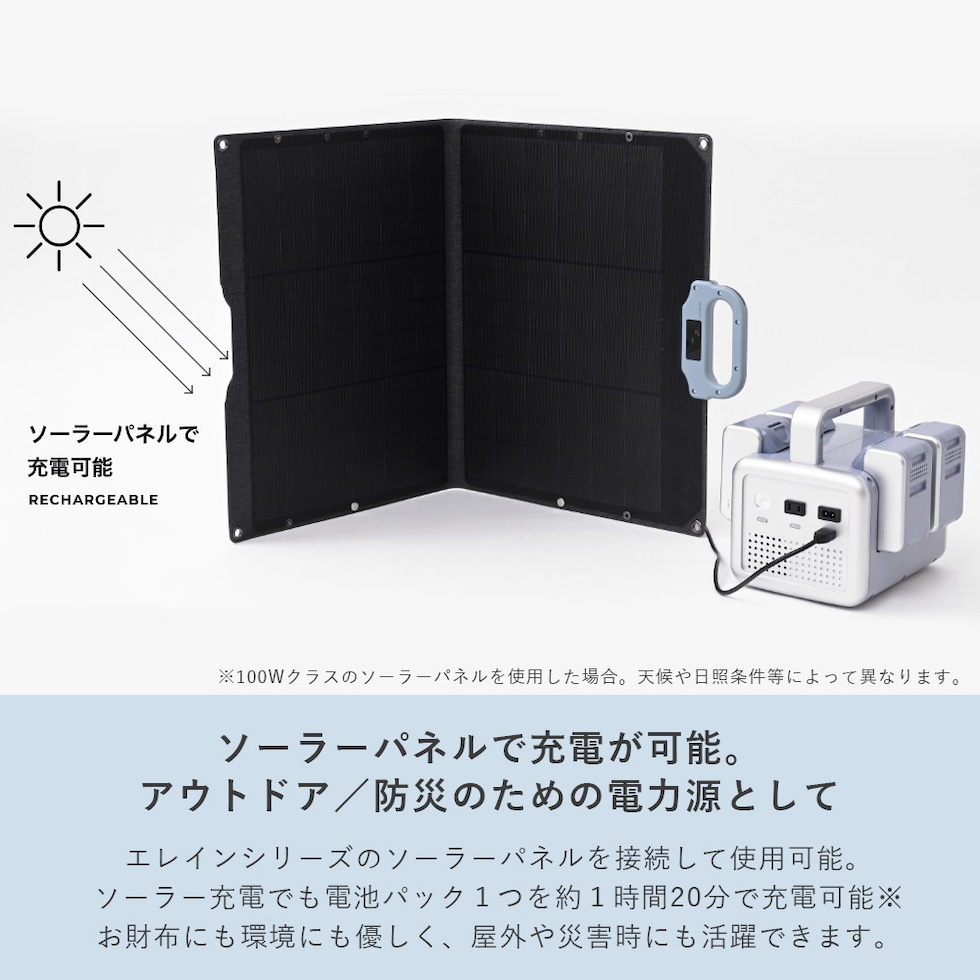 | 山善 YAMAZEN エレイン ELEIN ポータブル電源 ポタ電 モバイルバッテリー リチウムイオン バッテリー 電池パック セット ソーラーパネル 100W YBS-300E/YBD-5A/YSP-M100 |