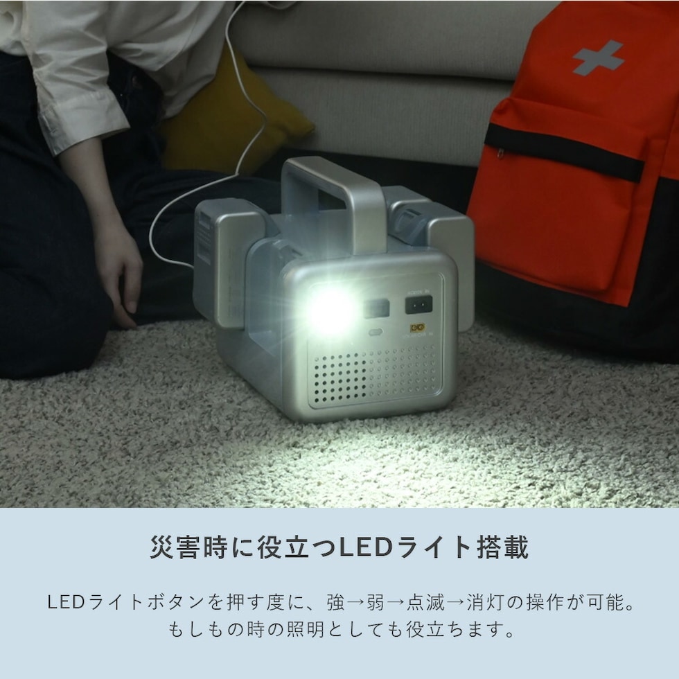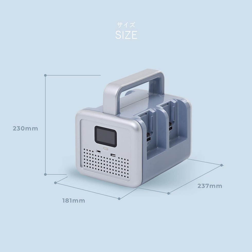 | 本体サイズ | 【バッテリーステーション】幅18.1×奥行23.7×高さ23cm 重量2.1kg【電池パック】幅12×奥行7.7×高さ7.3cm 重量670gg 【ソーラーパネル100W】 幅52.4×奥行127×高さ0.75cm 重量3.4kg 幅52.4×奥行67.5×高さ1.5cm(折り畳み時) |