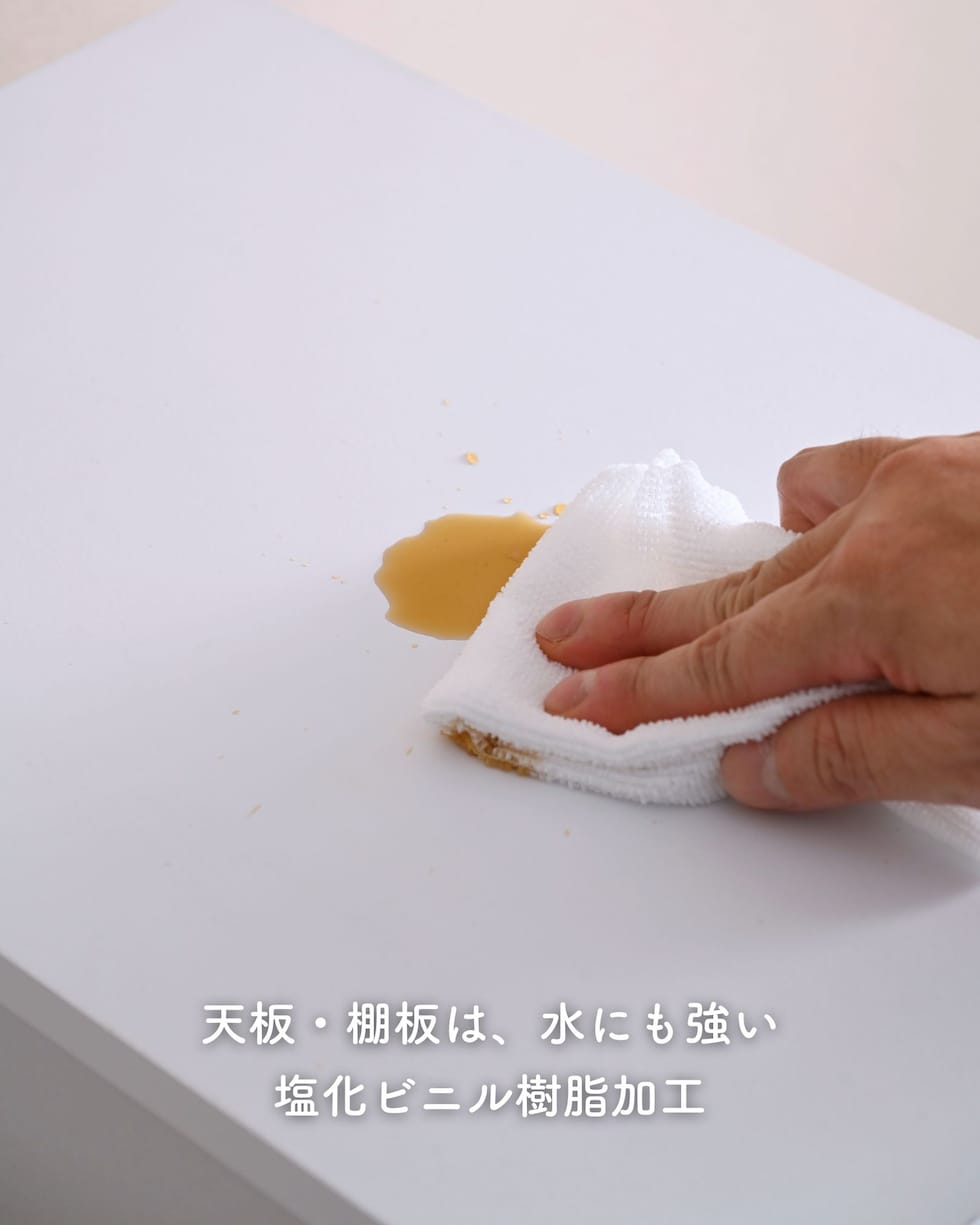 | 材質 | 本体: プリント紙化粧パーティクルボード、プリント紙化粧繊維板 天板合成樹脂繊維板(塩化ビニール樹脂) |