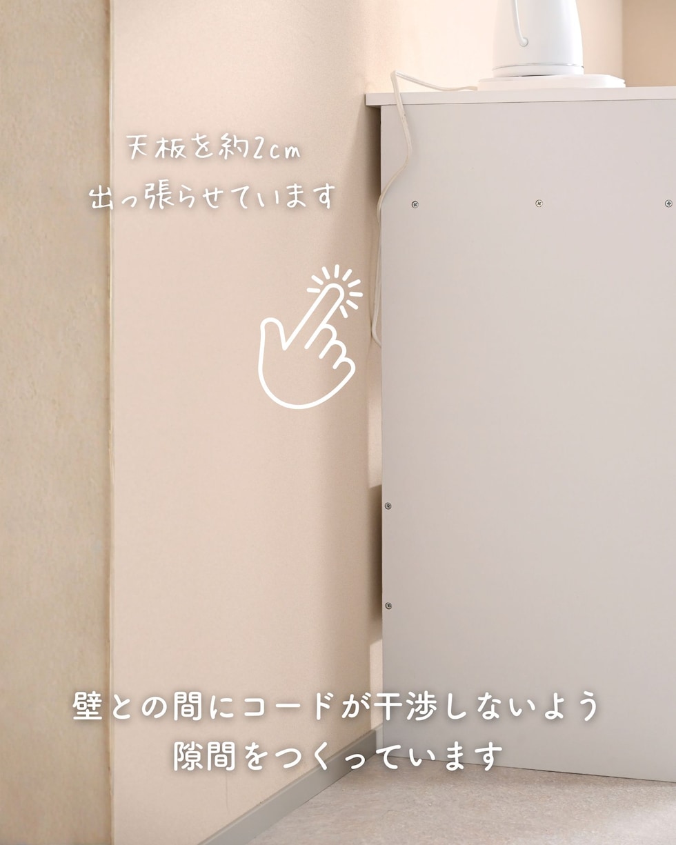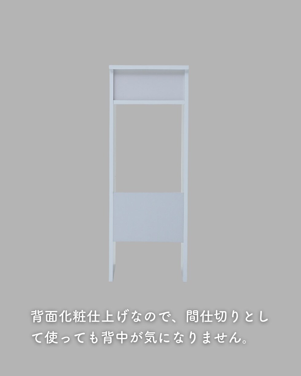 | 商品説明 | ●プラスドライバーをご用意ください。 ●キッチンの隙間に便利な幅約31cmのスリムな収納ラック ●天板は水濡れにも強い、合成樹脂化粧仕上げ ●ゴミ箱の上を作業や収納に使える隙間グッズ ●棚下スペース:幅27.5 奥行41 高さ70cm ●天板下スペース:幅27.5 奥行41 高さ12cm ●壁付けしても配線が干渉しないよう、天板下に約2cmのコードスペースを確保 ●背面化粧あり ●天板サイズ幅: 31 奥行45cm ●耐荷重: 天板10、棚板10、全体20kg、2台並べて使う場合、天板は30kg |