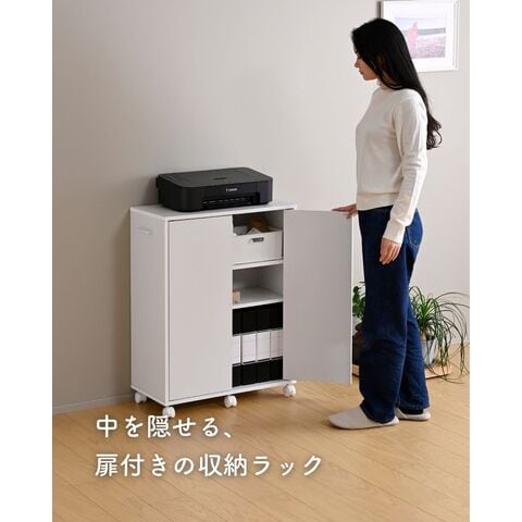 | 山善 YAMAZEN 扉付き サイドワゴン A4対応 キャスター付き |