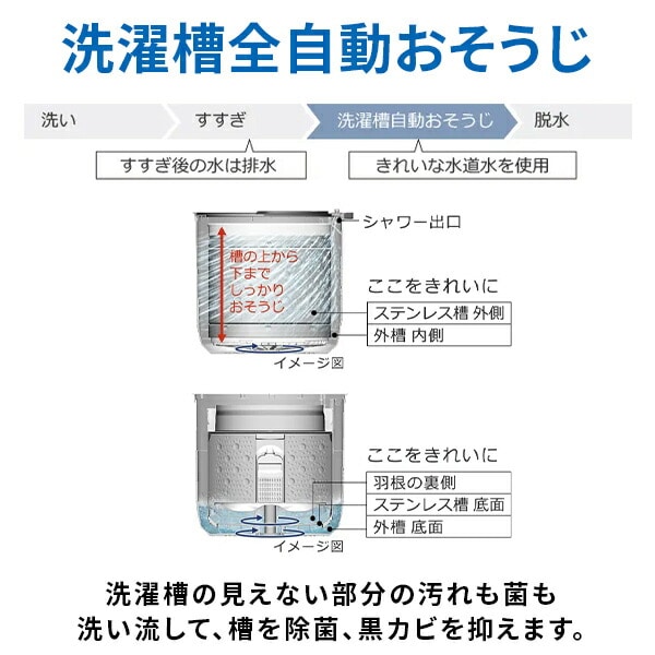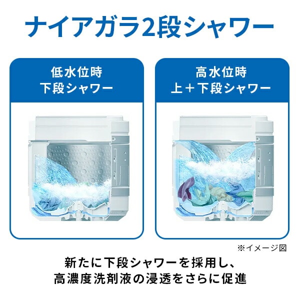 | 商品説明 | ●投入口を低くして、取り出しやすさに配慮した新筐体 ●ナイアガラ2段シャワー:新たに下段シャワーを採用し、高濃度洗剤液の浸透をさらに促進 ●おしゃれ着コース:ビートウィングプラスが生み出すスピード浸透水流を活用することで運転時間の短縮を実現 ●糸くずフィルター:大容量タイプ×1個にすることでお手入れの手間を軽減 ●洗濯・脱水容量:8kg ●予約機能:洗濯/3~24時間 ●目安時間:洗濯/28分 ●消費電力(50/60Hz):洗濯/240W ●消費電力量(50/60Hz):洗濯/51Wh ●標準使用水量:洗濯/92L ●運転音:洗い/32dB、脱水/39dB ●排水ホースの長さ:左出し82cm/右出し109cm |