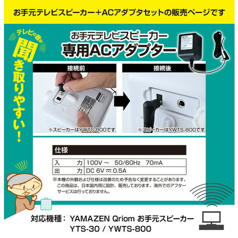 有線 手元スピーカー ボリュームダイヤル搭載 5m テレビスピーカー用 ACアダプタ セット YTS-30/AC-YTS500 テレビスピーカー 補聴 乾電池 テレビ会議 TVスピーカー AC 乾電池 2電源対応 イヤホン端子付 山善 YAMAZEN キュリオム Qriom 【送料無料】