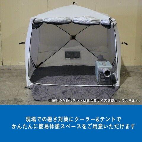 | 本体サイズ | 【クーラー】幅23×奥行47.4×高さ32.2cm 重量8.5kg 【テント】幅170×奥行190×高さ125cm 重量3.6kg |