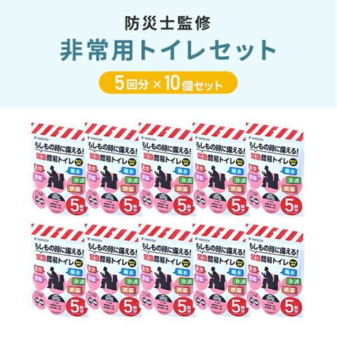 防災士監修 緊急簡易トイレ 簡易トイレ 非常用トイレ 5回用×10個セット YAK-5 備蓄 災害 防災 トイレ 緊急トイレ 非常用 断水 地震 防災用品 防災グッズ 簡単トイレ ポータブルトイレ 山善 YAMAZEN 【送料無料】