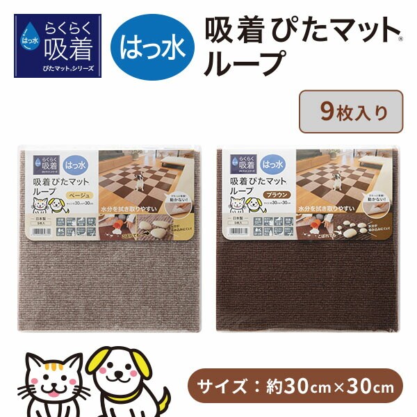 吸着ぴたマットループ 30×30cm 9枚入 HKPL-3006-9P/HKPL-3012-9P マット タイルマット ペットマット ペット用品 撥水 消臭 防音 洗える 日本製 ワタナベ工業 【送料無料】