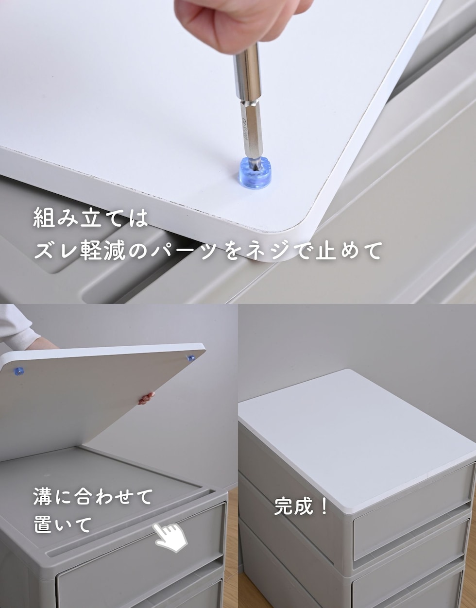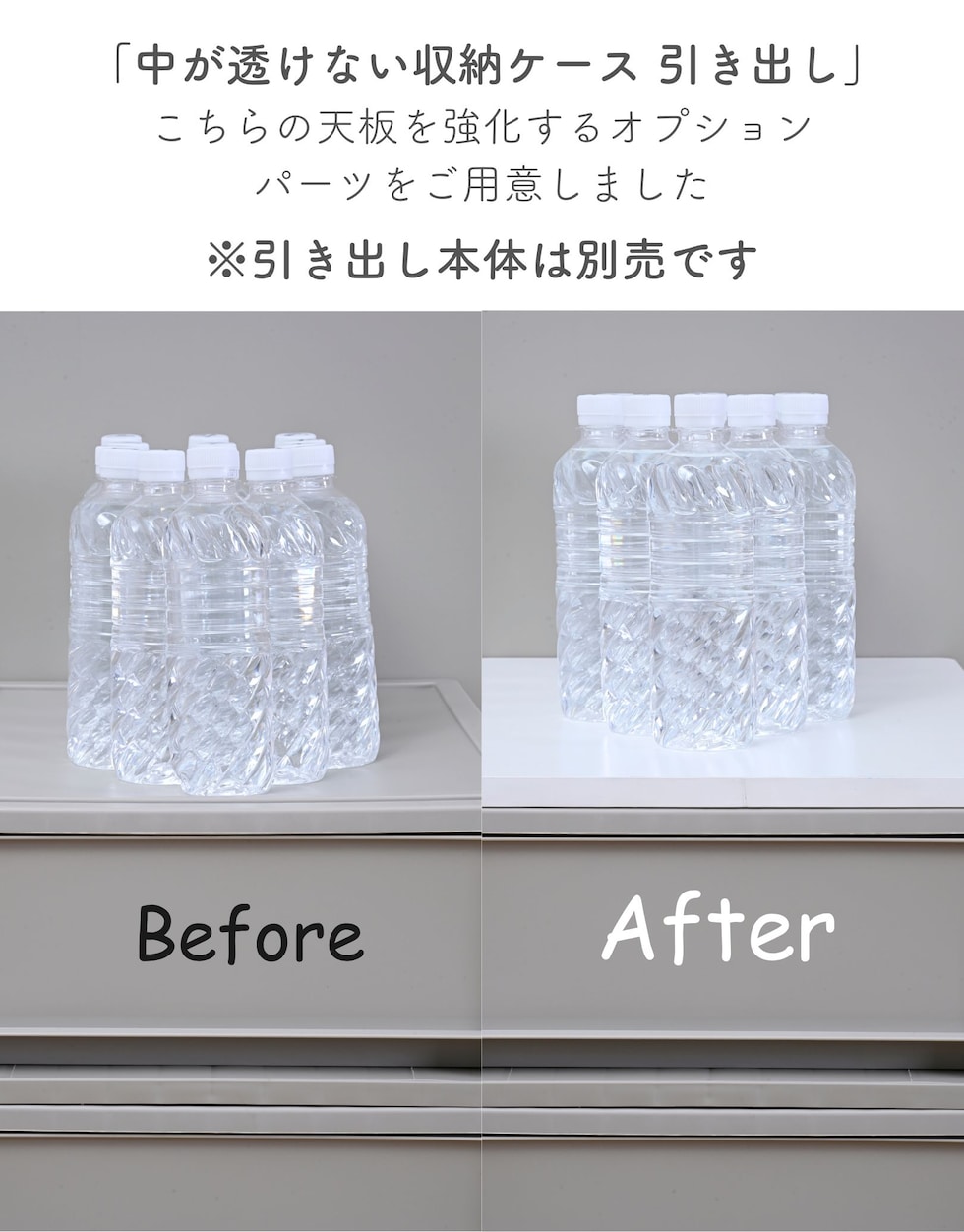 | 商品説明 | ●※本ページは「天板のみ」の販売ページです。引き出し本体は付いておりません。 ●「中が透けない 収納ケース 引き出し」の上に載せて天板を強化する天板パーツ ●素材はプリント紙化粧繊維板、軽くて強いフラッシュ構造 ※プリント紙のため、水拭きはできません。 ●角は丸みのあるやさしいデザイン ●載せた後の天板耐荷重: 10kg ●天板裏に突起を取り付け、横ずれを防止 ●対応商品:「中が透けない 収納ケース 引き出し 奥行74cm」STRC-74S/M/L ※上に載せるだけで、完全固定はできませんので、予めご了承ください。 ※引き出しを複数台並べる際、天板および引き出しの製造誤差により、同じ段数でも水平にならない可能性があります。 |