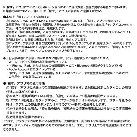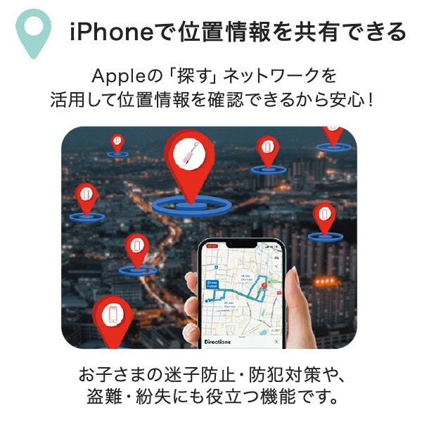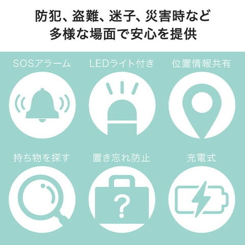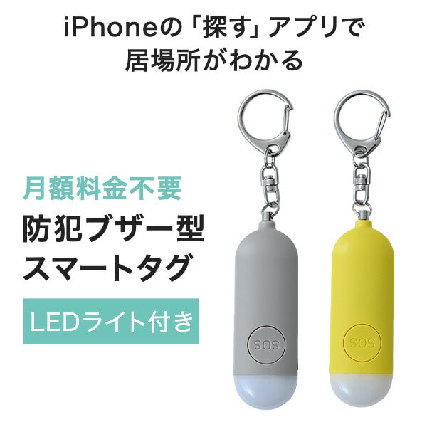 | 商品説明 | ●iPhoneの「探す」アプリ上で位置情報が確認できる防犯ブザー型スマートタグ(月額料金不要) ●お子様の登下校・迷子対策や夜間の外出に ●防犯、盗難、迷子、災害時など多様な場面で安心を提供 ●大音量120dBのブザー音 ●LEDライト付き ●定格入力:DC5V ●内蔵電池:リチウムイオンポリマー電池150mAh ●充電時間:約2時間 ●充電口:USB Type-Cポート ●セット内容:本体、充電用USBケーブル、取扱説明書兼保証書 ●技術適合番号:217-252497 ※「探す」機能はAppleデバイスが近くになる範囲で動作し、更新頻度はAppleにより管理されています。 ※本製品にはGPSは搭載されておりません。 |