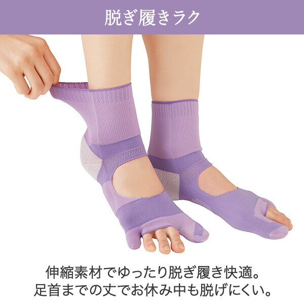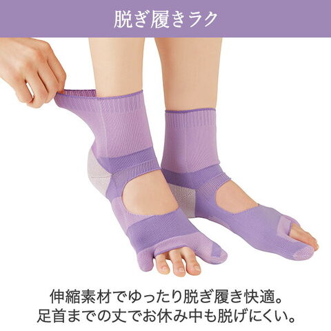 毎晩履きたい おやすみ 外反母趾サポーター 靴下 22.0-25.5cm 日本製 外反母趾 偏平足 内反小趾 かかとケア サポートソックス ソックス 脱げにくい パープル 右左セット メイダイ 【送料無料】
