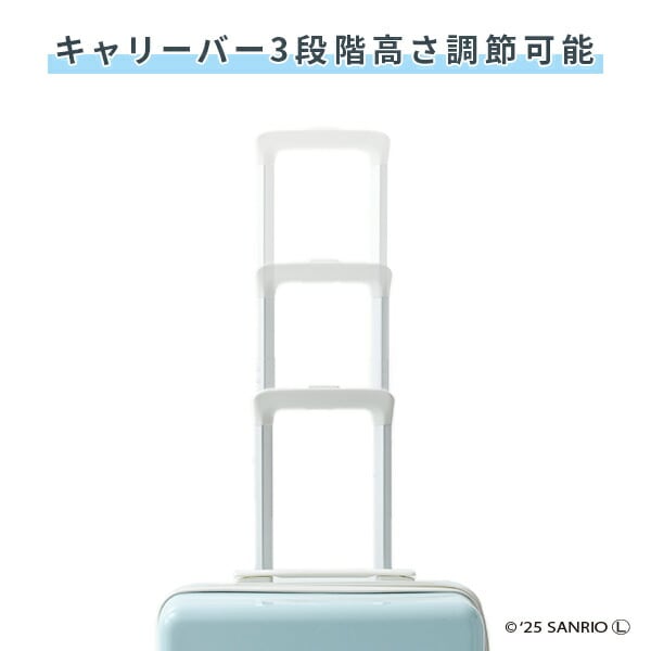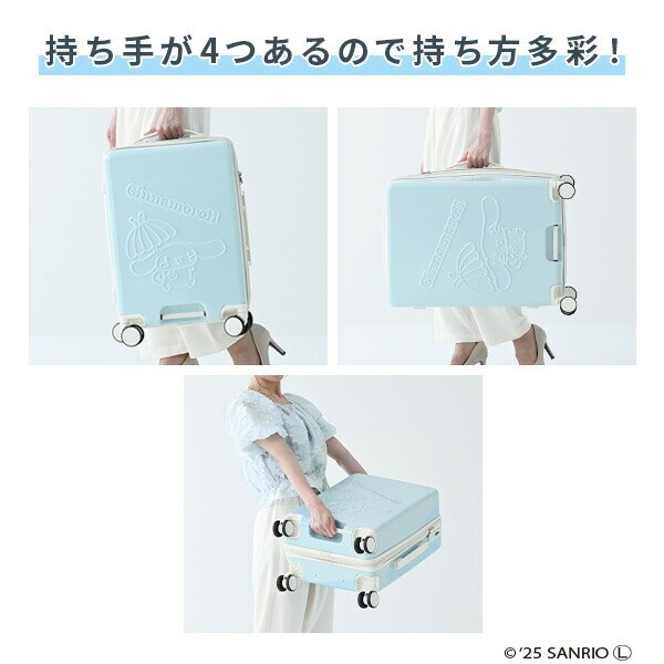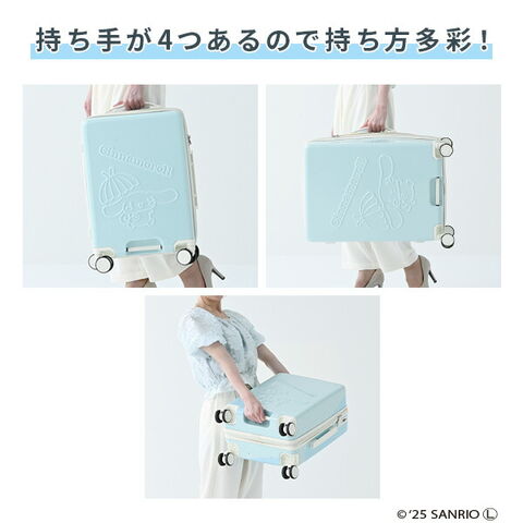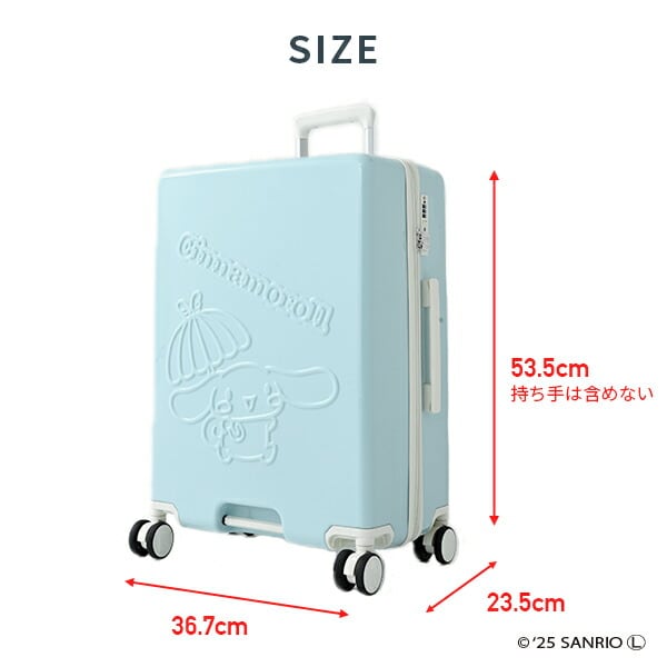 | 商品説明 | ●容量:35L ●TSAロック機能 ●機内持ち込み可能 ※一部の航空会社を除き、ほとんどの日本の航空会社の規定に対応しておりますが、機内持ち込みを確約するものではございません、出発前に航空会社の規定を必ずご確認ください ●PC+ABS樹脂の頑強ボディ(光沢仕上げ) ●両手で持てるから重さ軽減 ●シナモロールの総柄が可愛い内装 ●便利なサイドフック付き ●操作性に優れた350度回転4輪独立静音Wキャスター ●ストッパー付き ●タイヤはサスペンション内蔵で段差も軽快 ●ハンドルは3段階調整可能 |