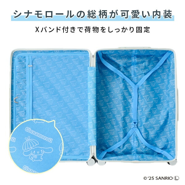 スーツケース キャリーケース TSAロック 軽量 サンリオ シナモロール 95L Lサイズ キャリーバッグ 国内旅行 海外旅行 サンリオグッズ おしゃれ かわいい キャラクター K.K物産 【送料無料】