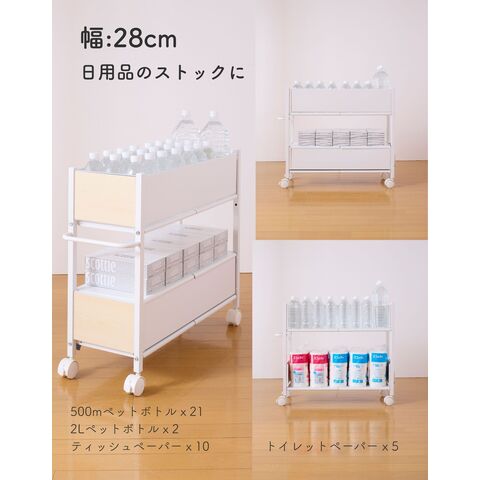 頑丈 収納ラック キャスター付き 奥行76 高さ64.5 幅28cm 木目パネル 全体耐荷重50kg ワゴン 押入れ 収納 押入れ収納 クローゼット クローゼット収納 ペットボトル ストック 前後 引き出し 山善 YAMAZEN 【送料無料】