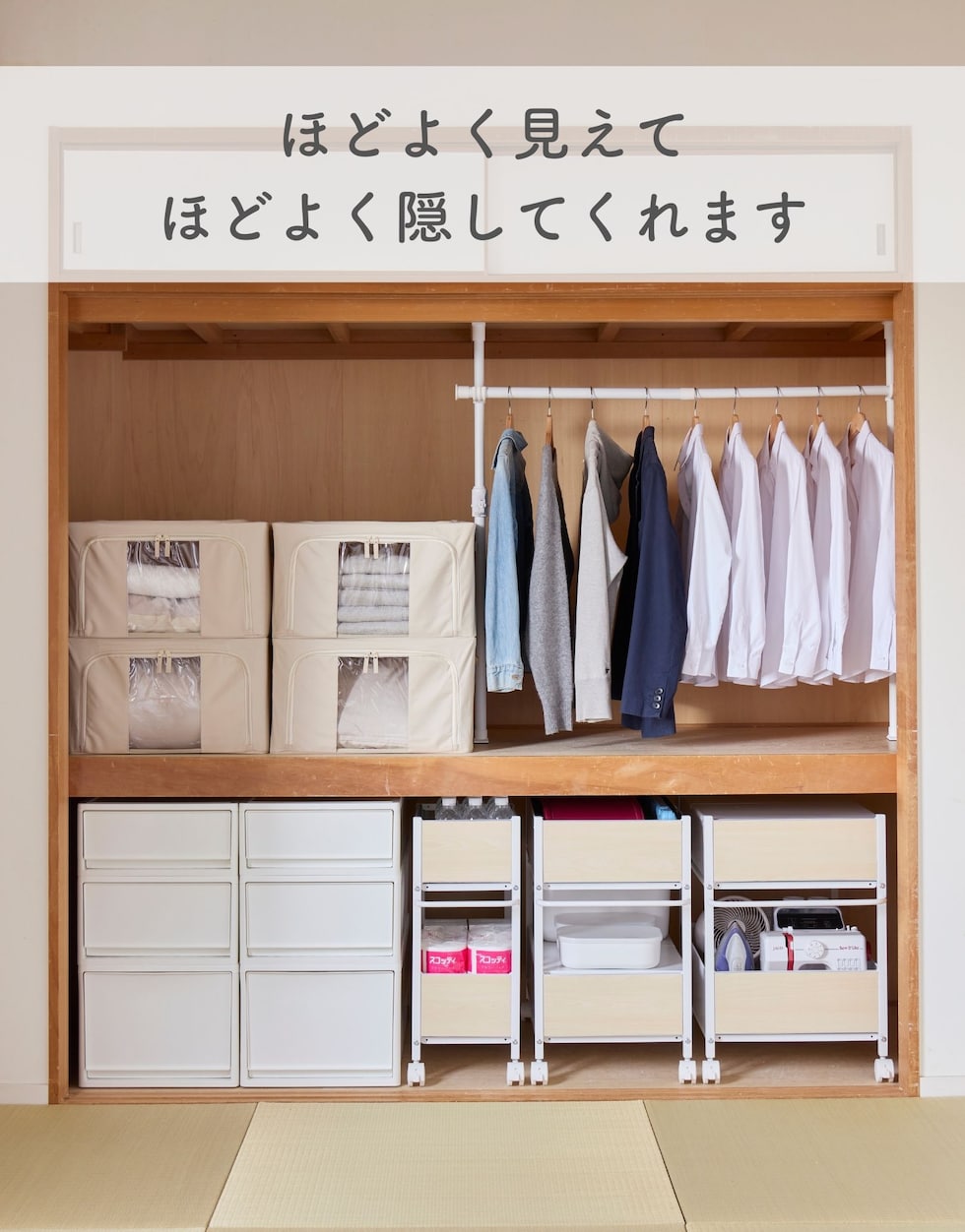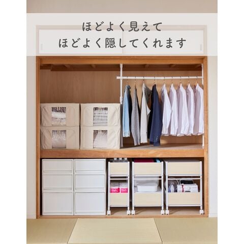 | 商品説明 | ●押入れの下段や奥深い空間を有効活躍する、キャスター付きの収納ラック ●前面に木目パネルを採用 ●程よく見えて程よく隠してくれる収納 ●上段、下段に使えるフタがついてホコリを予防 ●使わない時にフタを掛けておくためのフック付き ●押入れなどの段差でも出し入れしやすいキャスターと取っ手 ●囲いの長側面側はすべて着脱可能 ●マグネットも付けられるスチール製 ●床から底板高さ:9cm ●耐荷重:天板として使う場合5kg、棚板として使う場合10kg(それぞれ棚1枚当たり)、フック(1本)1kg、全体50kg ●キャスター4個(直径50mm、うちストッパー付き2個) ●内寸: 幅42.5 奥行き65cm |