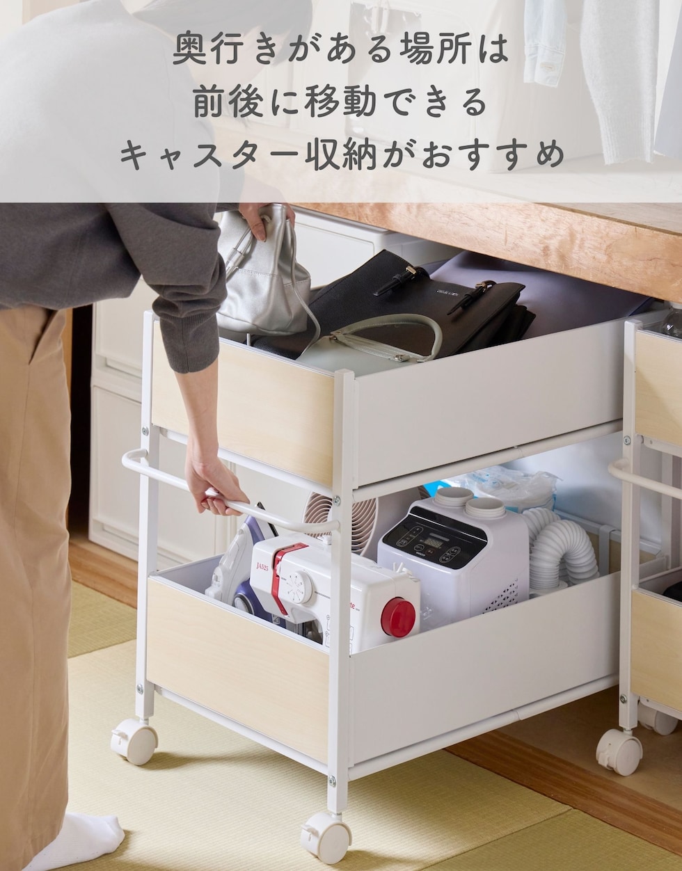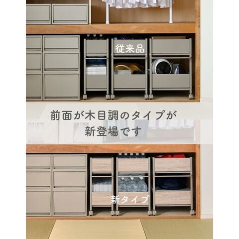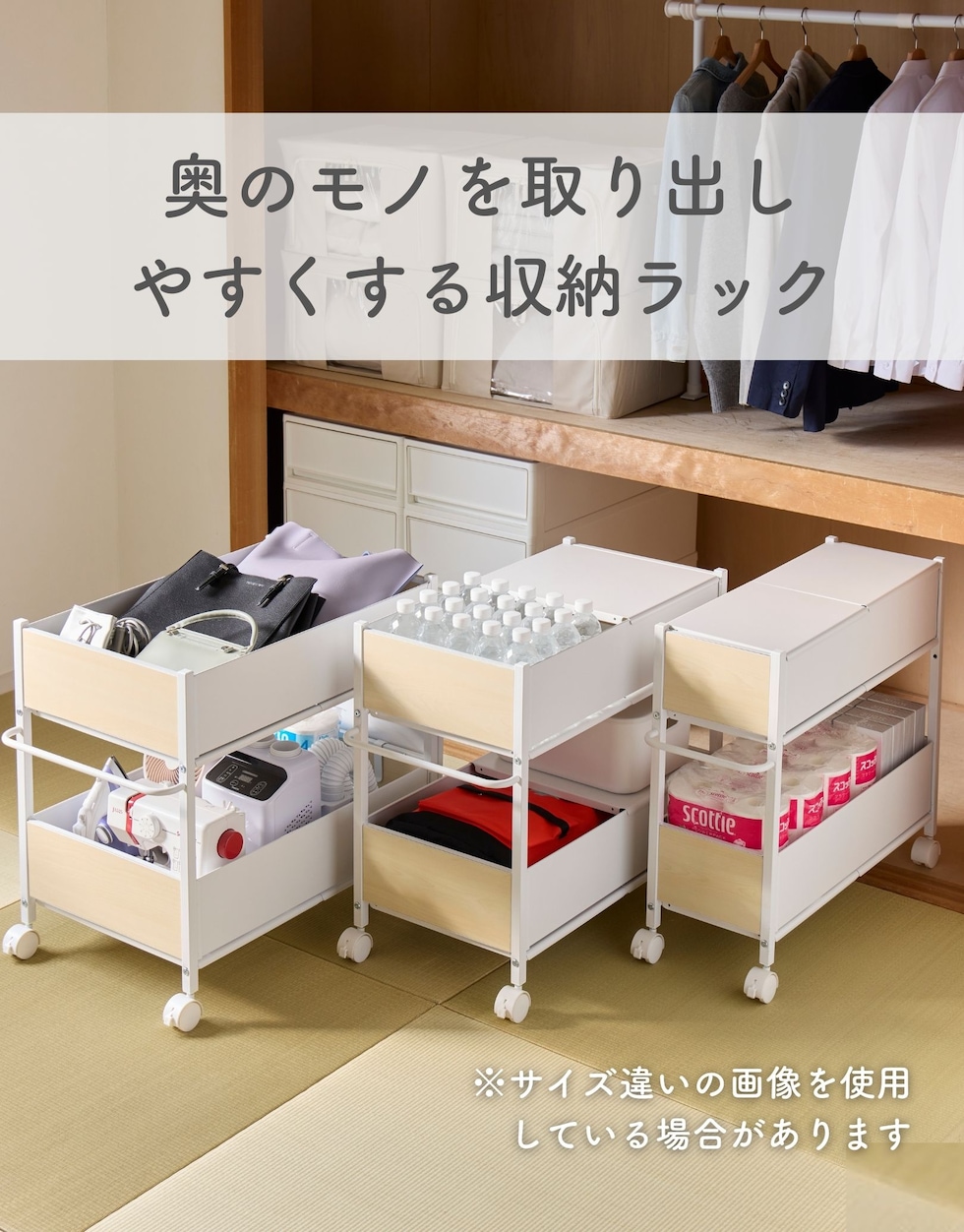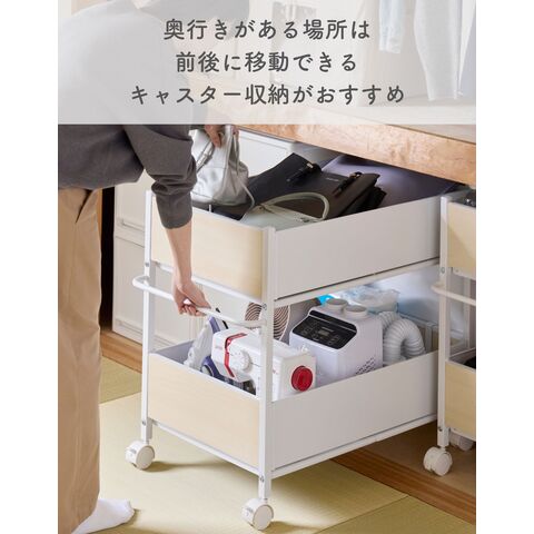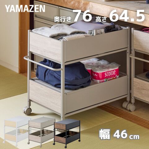 頑丈 収納ラック キャスター付き 奥行76 高さ64.5 幅46cm 木目パネル 全体耐荷重50kg ワゴン 押入れ 収納 押入れ収納 クローゼット クローゼット収納 ペットボトル ストック 前後 引き出し 山善 YAMAZEN 【送料無料】