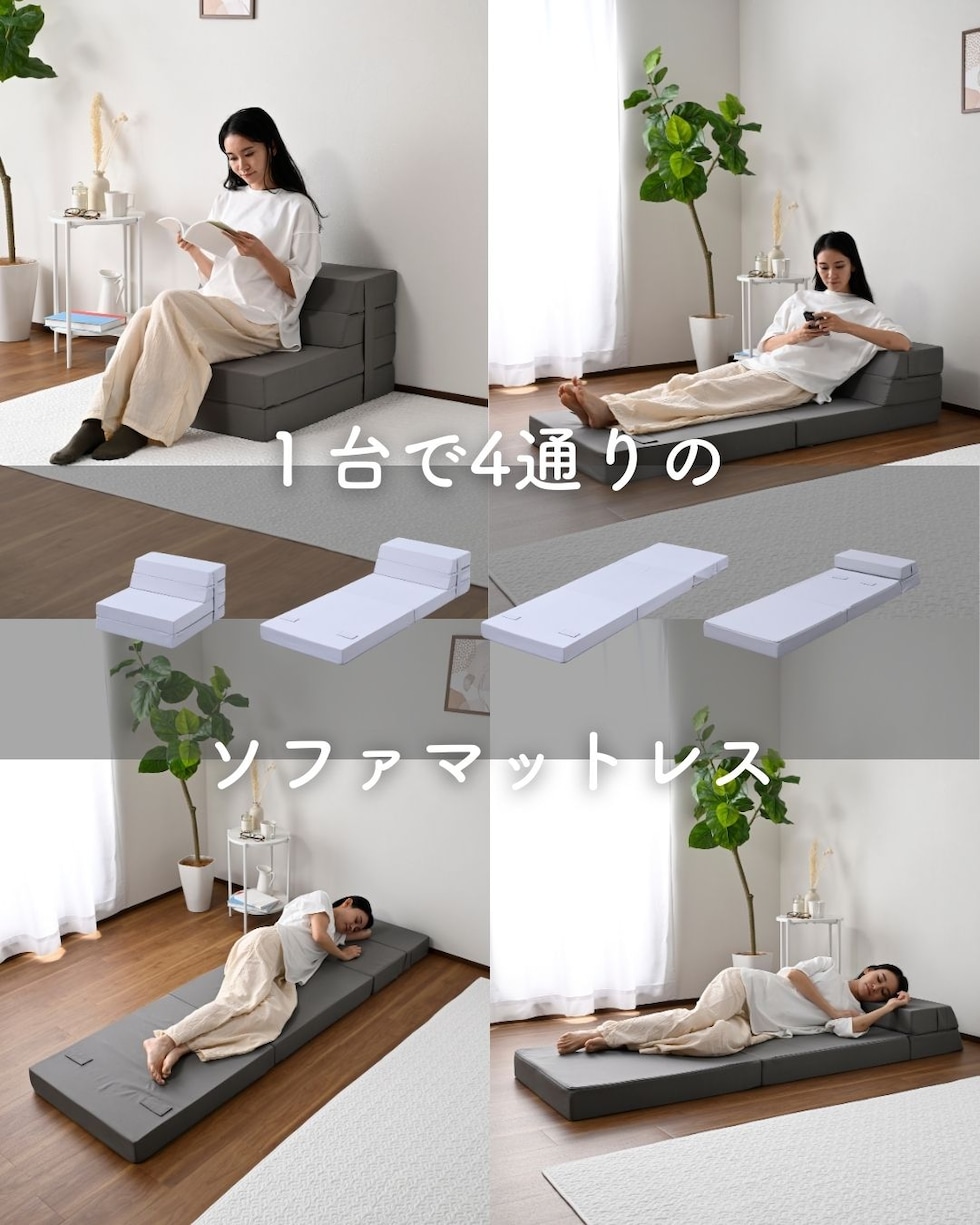 ソファ マットレス 高反発 折りたたみ ごろ寝 ソファベッド コンパクト 厚さ10cm かため 低ホルムアルデヒド 洗えるカバー 高密度 200N 敷き布団 三つ折り 高反発マットレス ベッド フロアソファ 1人掛け ソファマットレス 山善 YAMAZEN 【送料無料】
