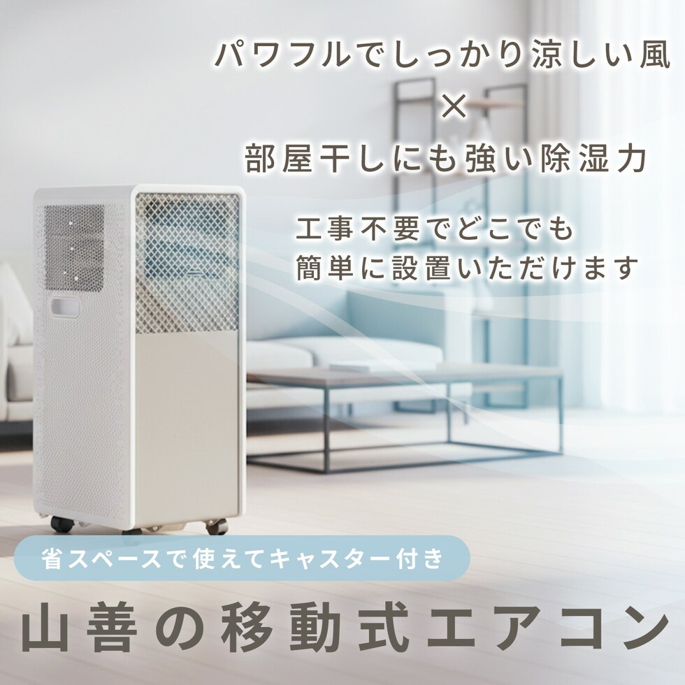 スポットクーラー ポータブルクーラー 工事不要 家庭用 ~9畳 (冷房/除湿/送風) 除湿量26L 風量2段階調節 切タイマー リモコン付き 排熱ダクト付き YEC-S23(W) 移動式エアコン スポットエアコン 家庭用 キャスター シンプル 山善 YAMAZEN 【送料無料】のレビュー