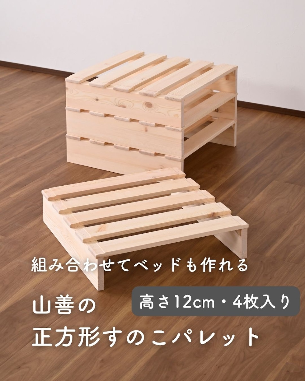 追加パレット パレットベッド用 高さ12cm 組み立て不要 ロボット掃除機対応 パイン材 フロアベッド すのこベッド ロータイプ パレット 正方形 連結可能 無塗装 すのこ 並べる パーツのみ ベッド別売り 山善 YAMAZEN 【送料無料】