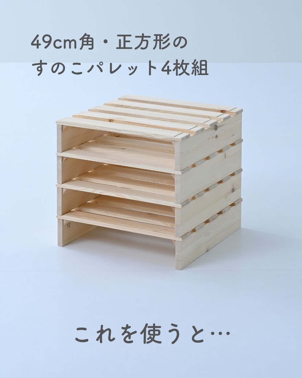 | 本体サイズ | 【パレット1枚あたり】幅49×奥行49×高さ12cm 重量2kg |