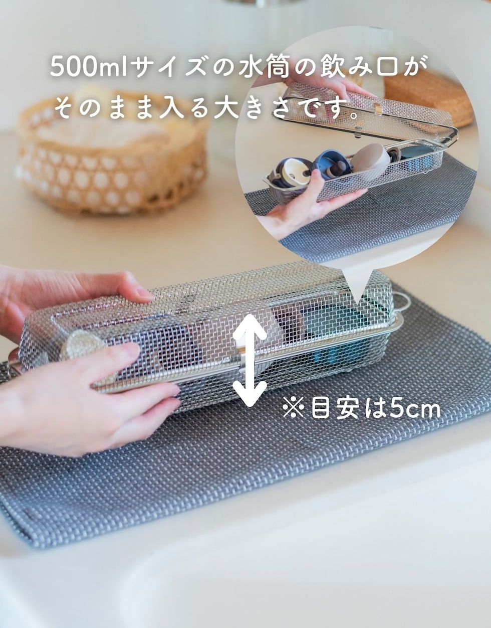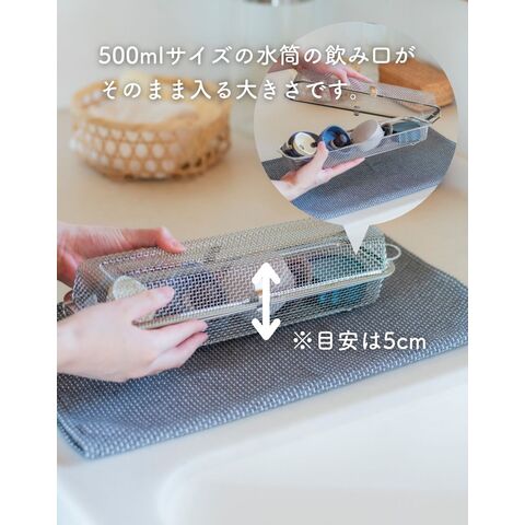 ●一般的な500mlの水筒の飲み口キャップがそのまま収納可能(※高さ5cm程度推奨)