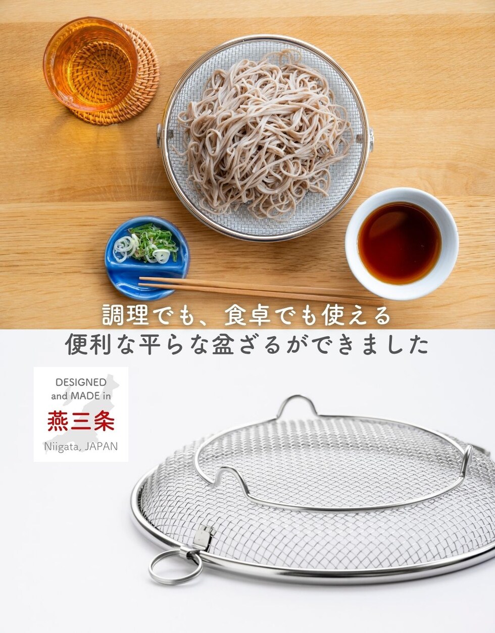 盆ざる ステンレス ざる 19cm 外せる 取っ手付き 脚付き ザル ステンレス盆ざる 湯切り 油切り 蒸し器 水切り 水切りカゴ キッチン 台所 燕三条 日本製 ビーワーススタイル 【送料無料】