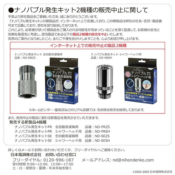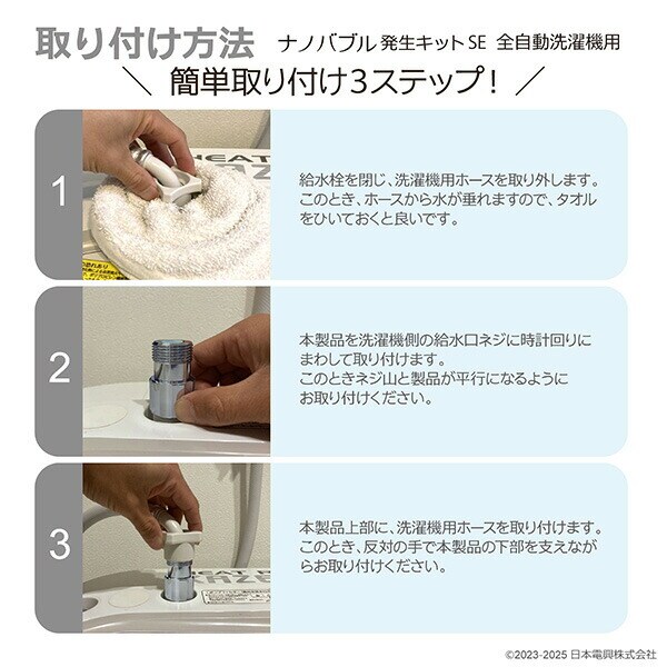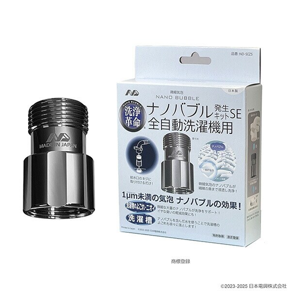 ナノバブル発生キット 日本製 全自動洗濯機用 ND-SEZS シンプル 洗浄力アップ ネジサイズG3/4 簡単取付 臭い軽減効果 ND-SEZS タテ型 ドラム式 洗浄力 微細粒子 Yシャツ黄ばみ 洗濯槽ヌメリ 黒カビ 日本電興 NIHONDENKO 【送料無料】