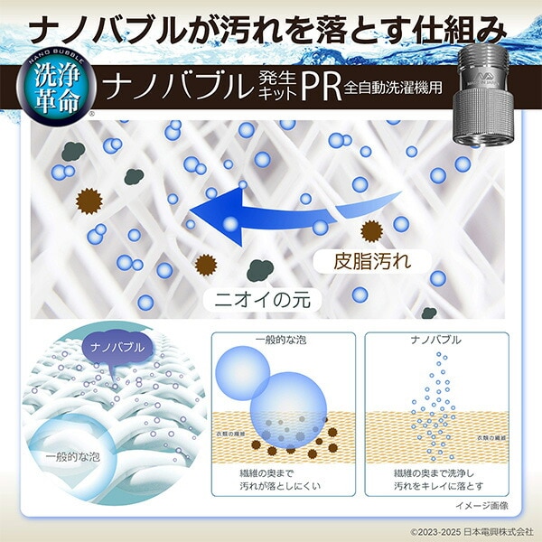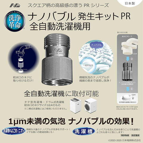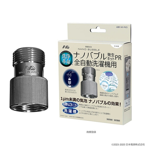 ナノバブル発生キット 日本製 全自動洗濯機用 ND-PRZS スクエア柄 洗浄力アップ ネジサイズG3/4 簡単取付 臭い軽減効果 ND-PRZS タテ型 ドラム式 洗浄力 微細粒子 Yシャツ黄ばみ 洗濯槽ヌメリ 黒カビ 日本電興 NIHONDENKO 【送料無料】