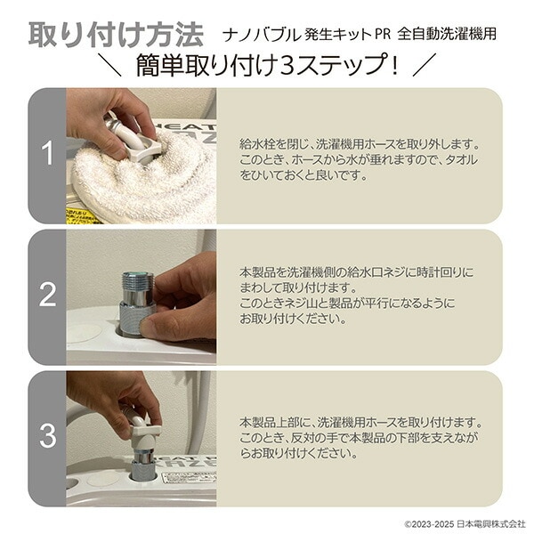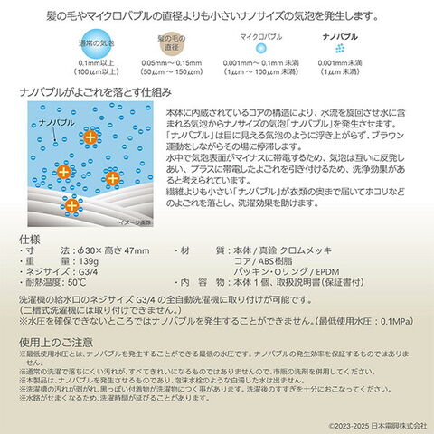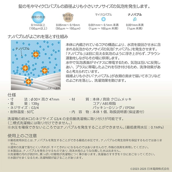 | 日本電興 NIHONDENKO ナノバブル発生キット 日本製 全自動洗濯機用 ND-PRZS スクエア柄 洗浄力アップ ネジサイズG3/4 簡単取付 臭い軽減効果 ND-PRZS |