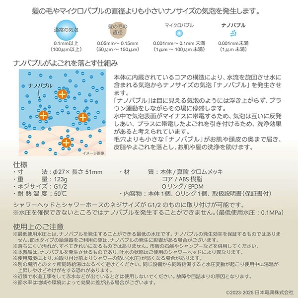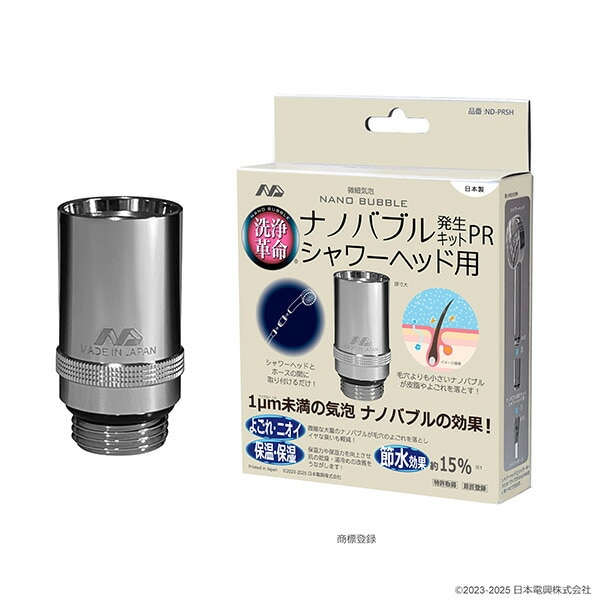 ナノバブル発生キット 日本製 シャワーヘッド用 ND-PRSH ネジサイズ G1/2 洗浄力アップ 毛穴汚れ 節水 ND-PRSH ナノバブル シャワー 取付簡単 節水 毛穴 洗浄 皮脂 よごれ 保温 保湿 乾燥 日本電興 NIHONDENKO 【送料無料】