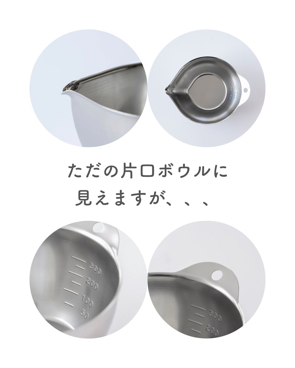| ビーワーススタイル 液だれしない ボウル 片口 ミニ 目盛付き 300cc 300ml ステンレス製 |