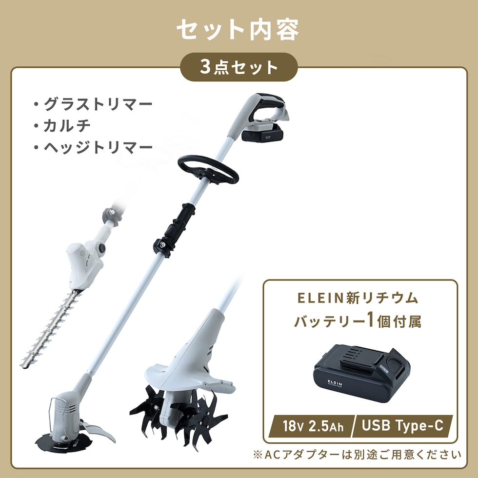 YAMAZEN ヤマゼン 山善 通販 ELEIN エレイン 園芸 ガーデニング 草刈機 草刈り機 グラストリマー 芝刈機 芝刈り機 ヘッジトリマー 耕運機 耕うん機 カルチベーター 充電式 USB充電 タイプC Type-C 18V 2.5Ah バッテリー式 お得セット コードレス 静音 電気式 排気量 ブラシレスモーター 力強 安定 回転 作業 快適 初心者向け 初心者 耕幅 深さ 回転数 無負荷作業時間 草刈幅 金属刃 樹脂刃 刈込幅 ストローク数 最大切断径 リチウムイオンバッテリー 充電時間 充電入力 チップソー 充電ケーブル お庭 強力 電動 作業用品 草刈器 刈払 芝かり 際がり きわ刈り きわがり 電動草刈り機 電動芝刈り機 電動刈払い機 電動刈払機 おしゃれ 家庭菜園 畑 野菜 田畑 スコップ 鍬 クワ コンパクト 家庭用 耕す 充電器 簡単 手入れ T4Q55 |