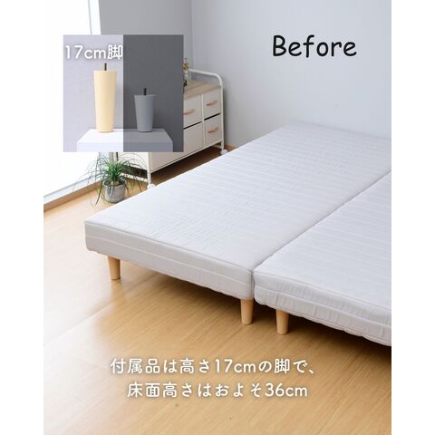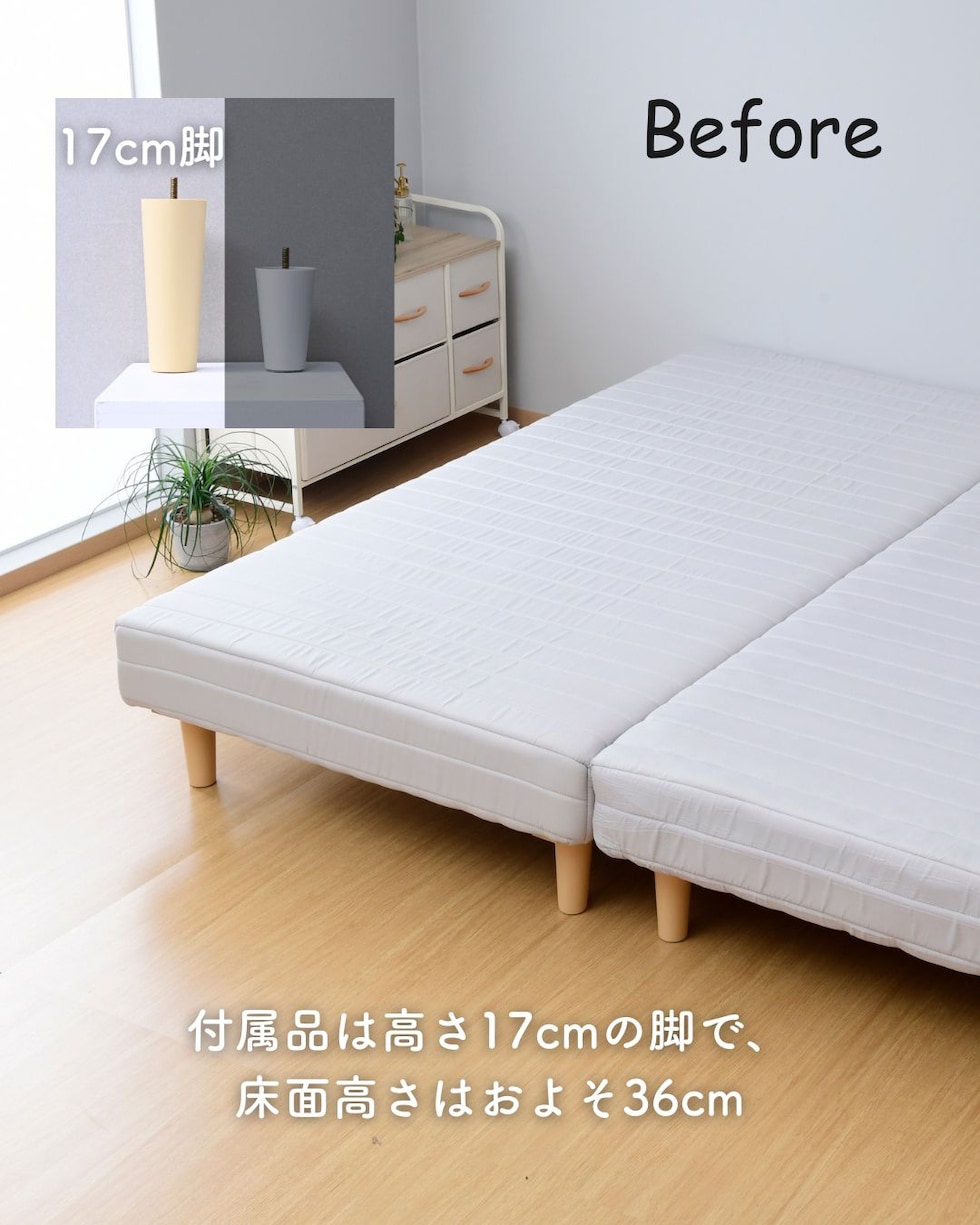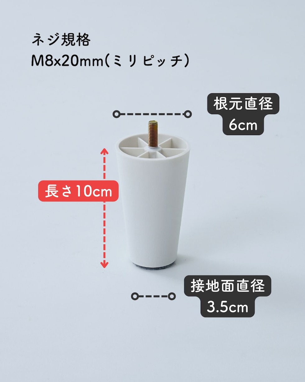 | 商品説明 | ●当社脚付きマットレスベッド専用の、付替え用ローベッド脚セット ※脚のみの販売です。本体は別売りですのでご注意下さい。 ●必要本数 シングル用・セミシングルショート用=6本 セミダブル用=7本 ダブル用=9本 分割タイプ・シングル用=8本 ●装着時ベッド下高さ10cm ●木のような質感の、木目の入った樹脂製 ●本体にねじ込むだけの簡単取り付け式 ●設置面にはキズ防止パッド付き ●ネジ規格 M8x20mm(ミリピッチ) ※当社販売の脚付きマットレスベッドのみ対応可能です。その他の製品につきましては適合確認しておりませんのでご了承下さいませ。 |