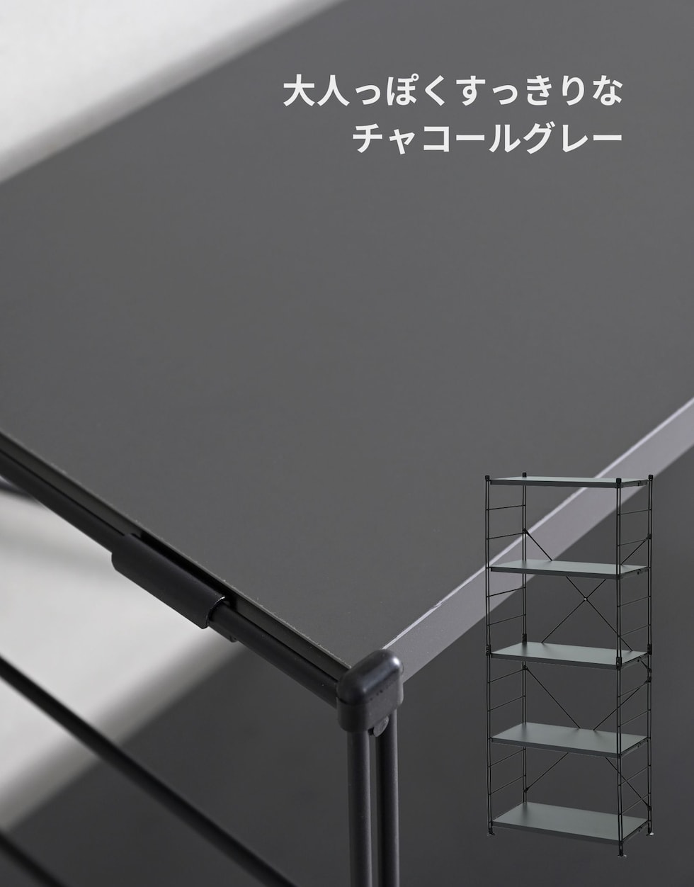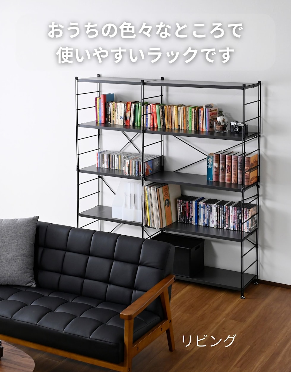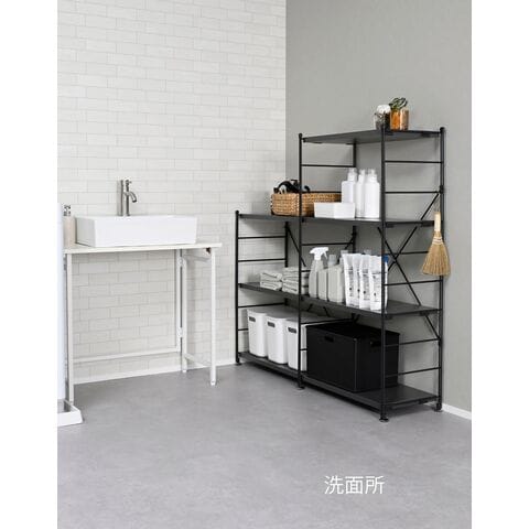 | 材質 | フレーム: スチール(エポキシ樹脂塗装) 棚板: 合成樹脂化粧パーティクルボード(メラミン樹脂) |