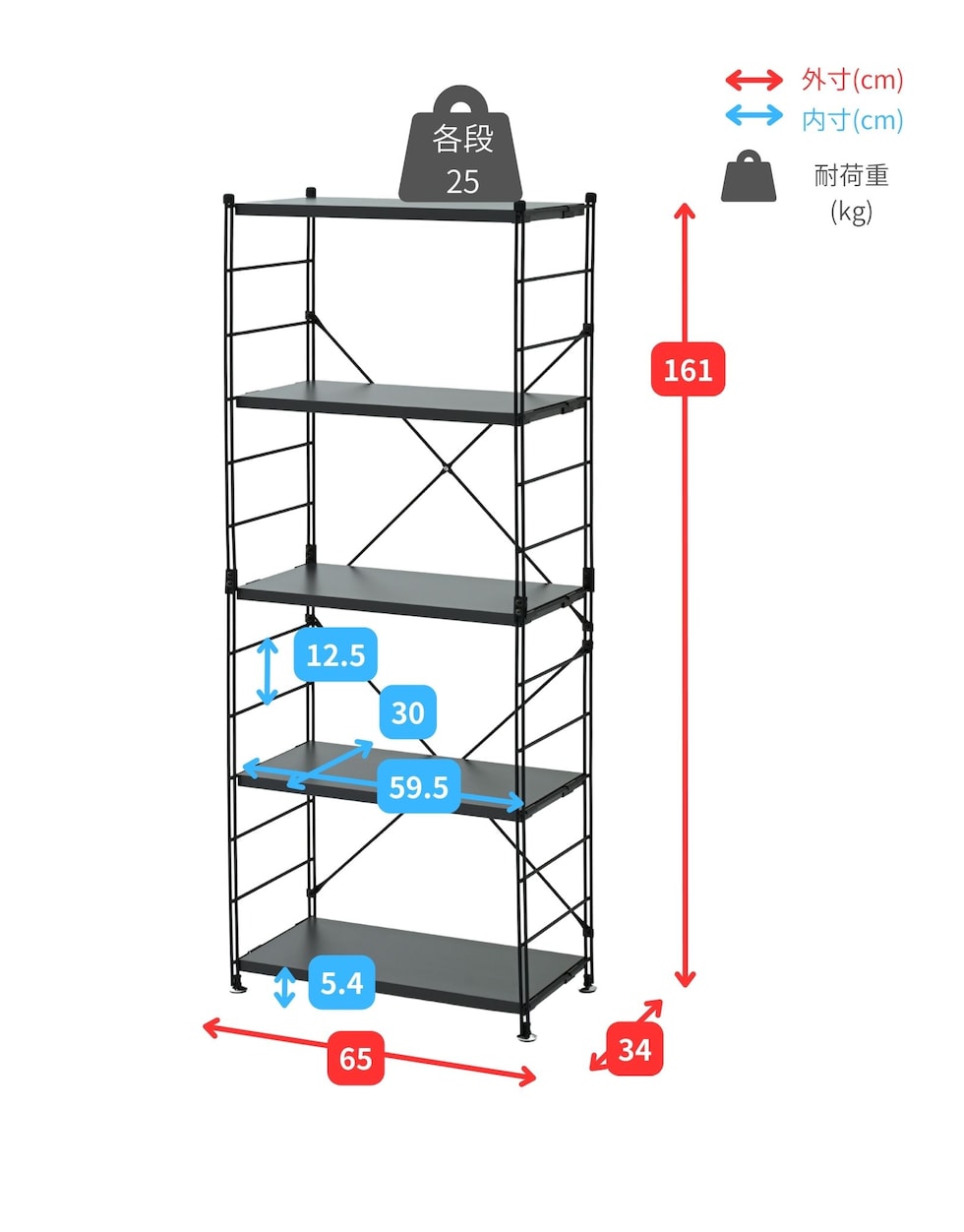 | 本体サイズ | 幅65×奥行34×高さ161cm 重量25.5kg |