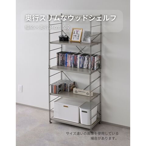 ラック キッチンラック 木製棚板 5段 幅65cm 奥行34cm 高さ161cmウッドシェルフ ディスプレイラック スチールラック ワイヤーラック オープンラック シェルフ 棚 収納 可動棚 リビング 子供部屋 キッチン 山善 YAMAZEN 【送料無料】