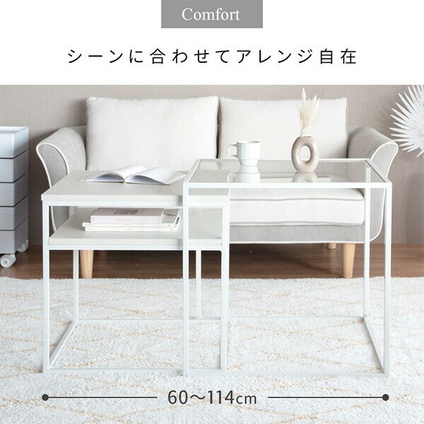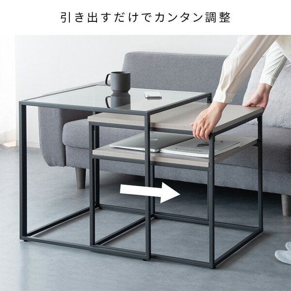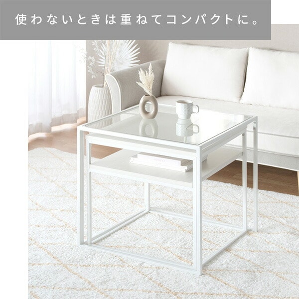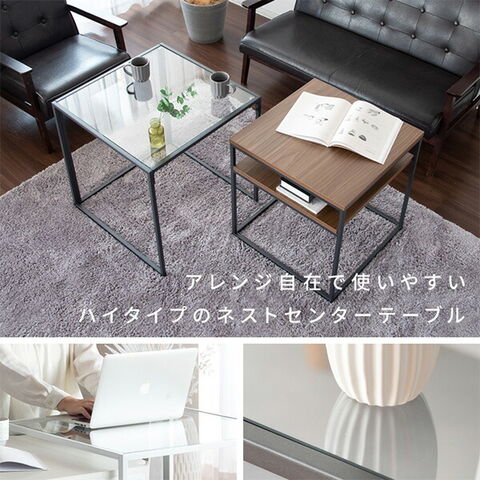 | 商品説明 | ●ソファでのお食事やパソコン作業に便利なハイタイプのネストセンターテーブル ●重ねたり切り離したり、シーンに合わせてレイアウト可能 ●ガラス天板は美しく丈夫な強化ガラス採用 ●木製テーブルは便利な収納棚付き ●お部屋に合わせて選べる3色展開 ●耐荷重:ガラス天板10kg、木天板15kg、棚板5kg |