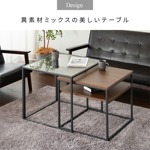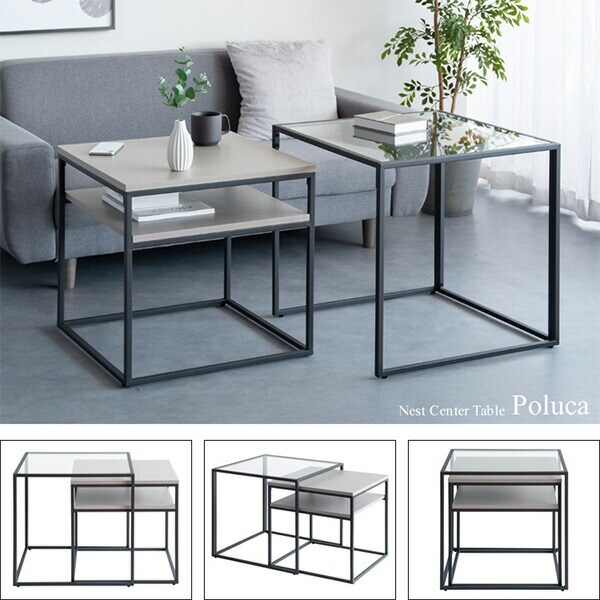 ネストセンターテーブル Poluca (ポルカ) NCT-M600 テーブル 2個セット ネストテーブル センターテーブル ソファテーブル ガラステーブル 入れ子 棚付き スクエア ハイタイプ おしゃれ コンパクト 一人暮らし 新生活 リビング 宮武製作所 【送料無料】