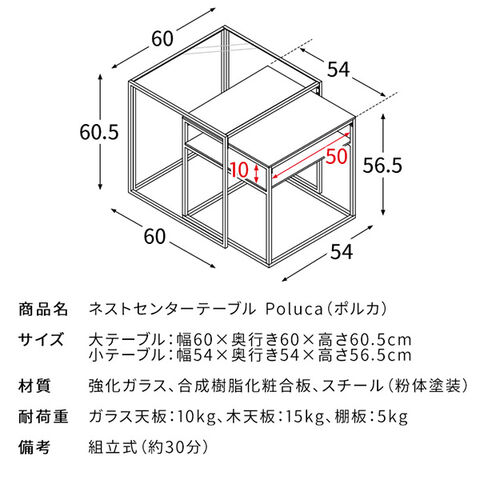 | 本体サイズ | 大テーブル:幅60×奥行60×高さ60.5cm 小テーブル:幅54×奥行54×高さ56.5cm |