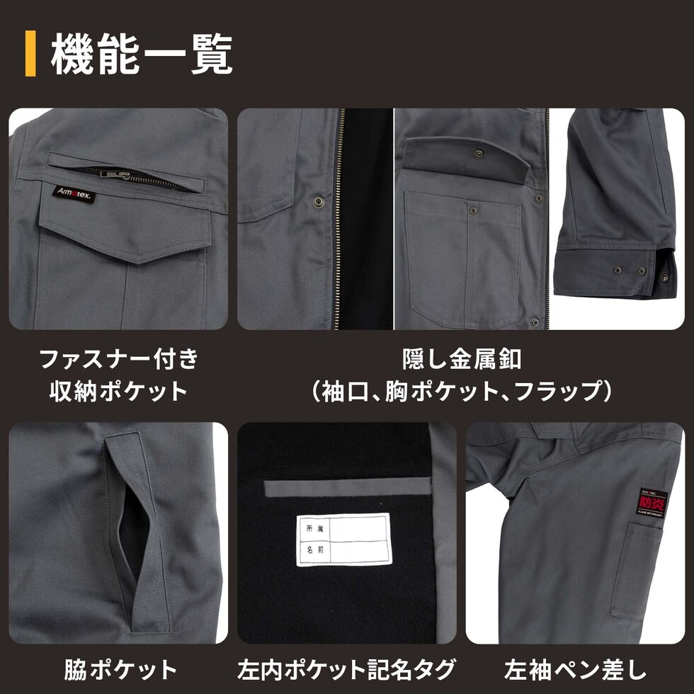 商品説明 ●溶接、金属加工、造船、炉前作業など火気のある作業に適した防炎ジャケット