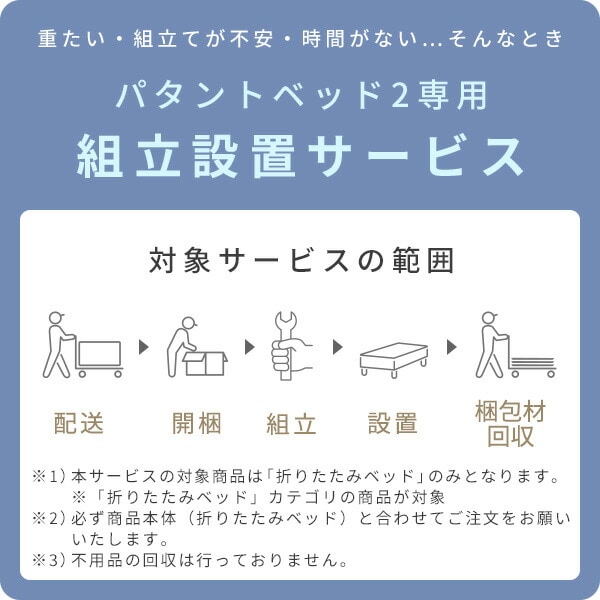 商品説明 ●本ページの組立設置サービスは、商品(ベッドフレーム「パタントベッド 2」)と同時にご注文いただくサービスです