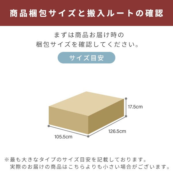 以下の搬入ルートにおいて梱包状態の+20cm以上の余裕が必要となります