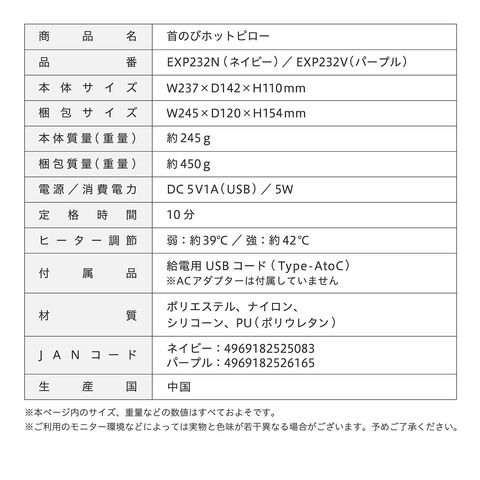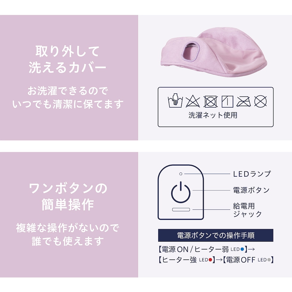 | 商品説明 | ●乗せるだけで首ぐーんと伸びる!首のびネックピロー ●首の疲れに悩む人のための、ストレッチできるネックピロー ●2つの突起と首の湾曲に沿ったカーブ構造で、首の筋肉をストレッチ ●筋肉を温めて効果的なストレッチをサポートするヒーター機能を搭載 ●10分経過すると自動でヒーターをオフ。切り忘れを防ぐ安心機能付き ●低反発ウレタン素材で、クッション性と安定感抜群。もっちり肌ざわりも良く優しい使い心地 ●取り外して洗えるカバーでいつでも清潔 ●ワンボタンの簡単操作で誰でも使いやすい |