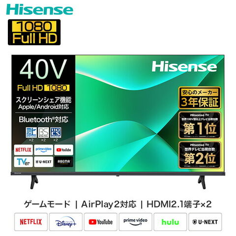| ハイセンス Hisense フルハイビジョン液晶テレビ 40V型 3年保証 2K+ Wチューナー内蔵 Apple Airplay2/Anyview Cast 対応 40C35R |