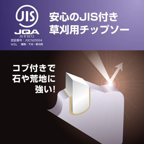 | 商品説明 | ●安心のJIS付きチップソー ●一般雑草下刈用 ●小石から刃先を守る強力コブ付チップ 【SC2-JK230】 ・取付穴径:25.4mm ・刃数:36 ・外径:230mm ・おすすめ排気量:20cc以上 【SC2-JK255】 ・取付穴径:25.4mm ・刃数:40 ・外径:255mm ・おすすめ排気量:25cc以上 |