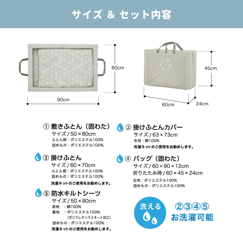 ベビー布団 セット 折りたたみベビー布団 スノークリスタル ミニサイズ 05501 布団セット ふとんセット ベビー 赤ちゃん 新生児 ベビー用品 布団 ベビーふとん 寝具 持ち運び 帰省 出産準備 出産祝い おしゃれ かわいい カトージ KATOJI 【送料無料】のレビュー