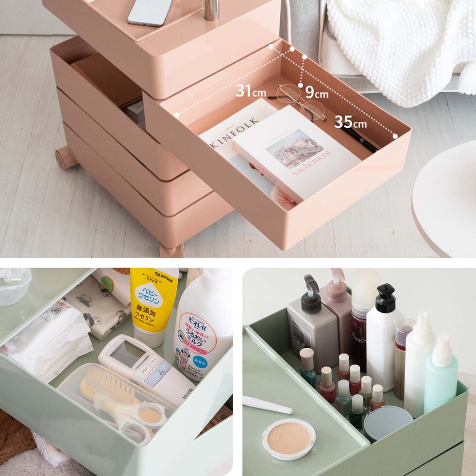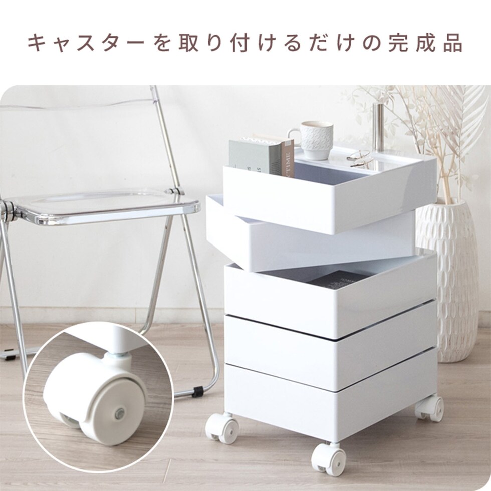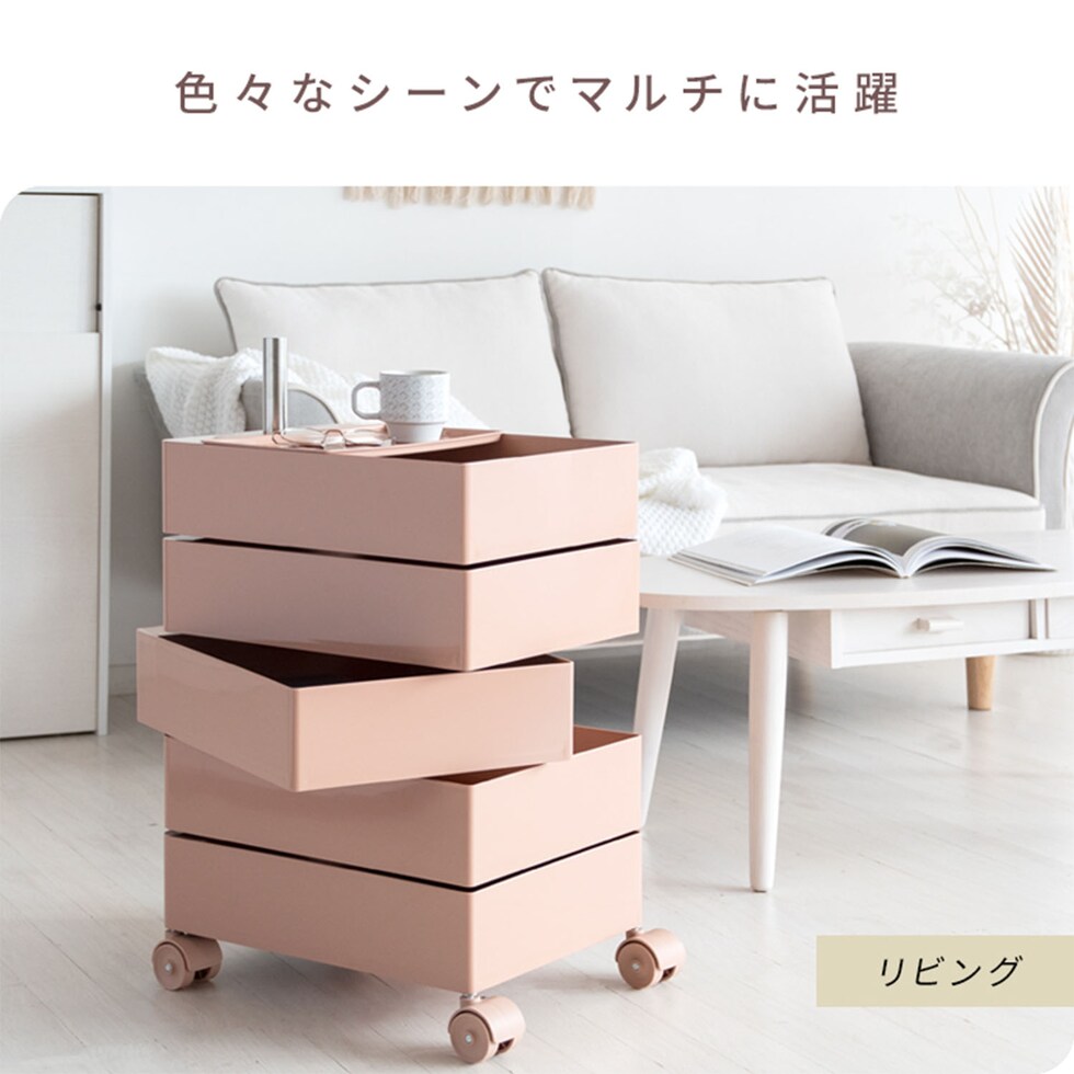 | 商品説明 | ●棚はそれぞれ360度回転式 ●天板トレーは取り外し可能 ●すき間に収まるスリムサイズ ●リビングや寝室、デスクなど色々なシーンでマルチに活躍 ●持ち手と4輪キャスター付きなので移動もラクラク ●衝撃や水に強いABS素材 ●キャスターを取り付けるだけの完成品 ●好みに合わせて選べる5色展開 |