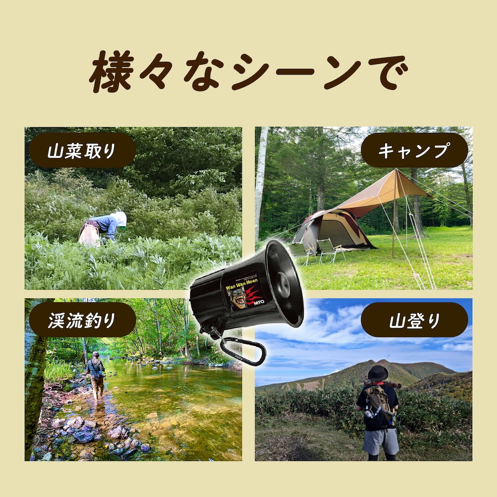 熊よけ わんわんホーン カラビナ 乾電池ケース付き 熊除けホーン 強力メガホン型 最大音量110db DCC011-HOW-C 熊 大型犬 唸り声 吠え声 威嚇回避 アウトドア キャンプ 山歩き 林業 登山 山菜取り 害獣対策 熊対策 熊除け MTO 【送料無料】のレビュー