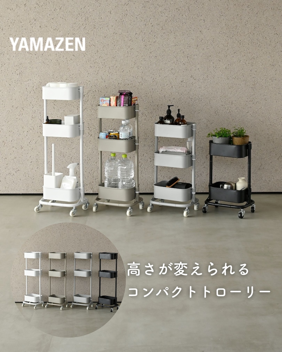 ワゴン キッチンワゴン コンパクト キャスター付き 幅30.5 奥行23.5 高さ85.5cm ベビーワゴン オムツ キッチン 洗面所 ワゴン収納 高さが変えられる バスケットトローリー 山善 YAMAZEN 【送料無料】