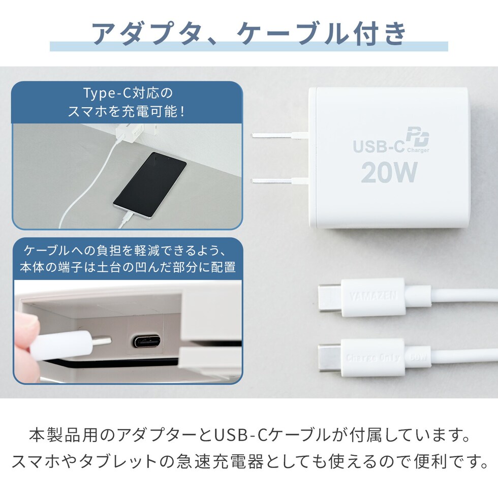 | 商品説明 | ●電源入力(アダプター):100-240V(50/60Hz)/0.6A(Max) ●電源出力(アダプター):USB-C 5.0V-3.0A / 9.0V-2.22A / 12.0V-1.67A ●合計出力(アダプター):20.0W (Max) ●消費電力:18W:USB-C 9.0V / 12.0V ●UCBケーブル長:約1.6m ●電気代目安(1時間あたり):約0.6円(50/60Hz) ●DCモーター搭載 ●風量:無段階(ダイヤル操作) ●切タイマー:1/2/4時間 ●オートオフタイマー非搭載モデル ●左右首振り(首振りつまみ) ●風向上下手動角度調節可能 ●高さ調節対応 ●付属品:ACアダプタ、Type-C USBケーブル ●メーカー保証:1年間 ※お手持ちのPD対応アダプター・ケーブルを使用する場合、性能や形状、使用状況により運転できないことがあります。 |